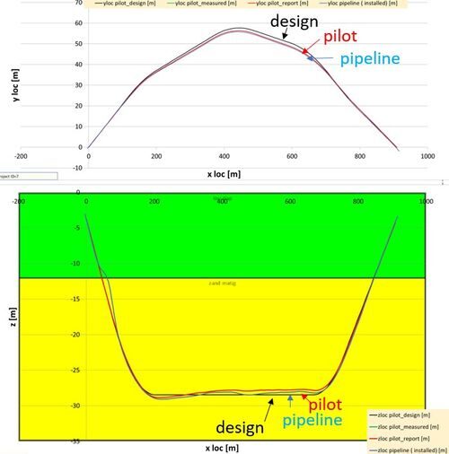 Figure 2 -The design drilling line, the measured pilot drilling line, and the final pipeline location